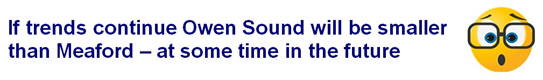 Theoretically there will be a time when both Georgian Bluffs and Meaford have greater populations than Owen Sound. Just think about that for a minute – Owen Sound will be smaller than Meaford at some time in the future if things continue on the same path.
